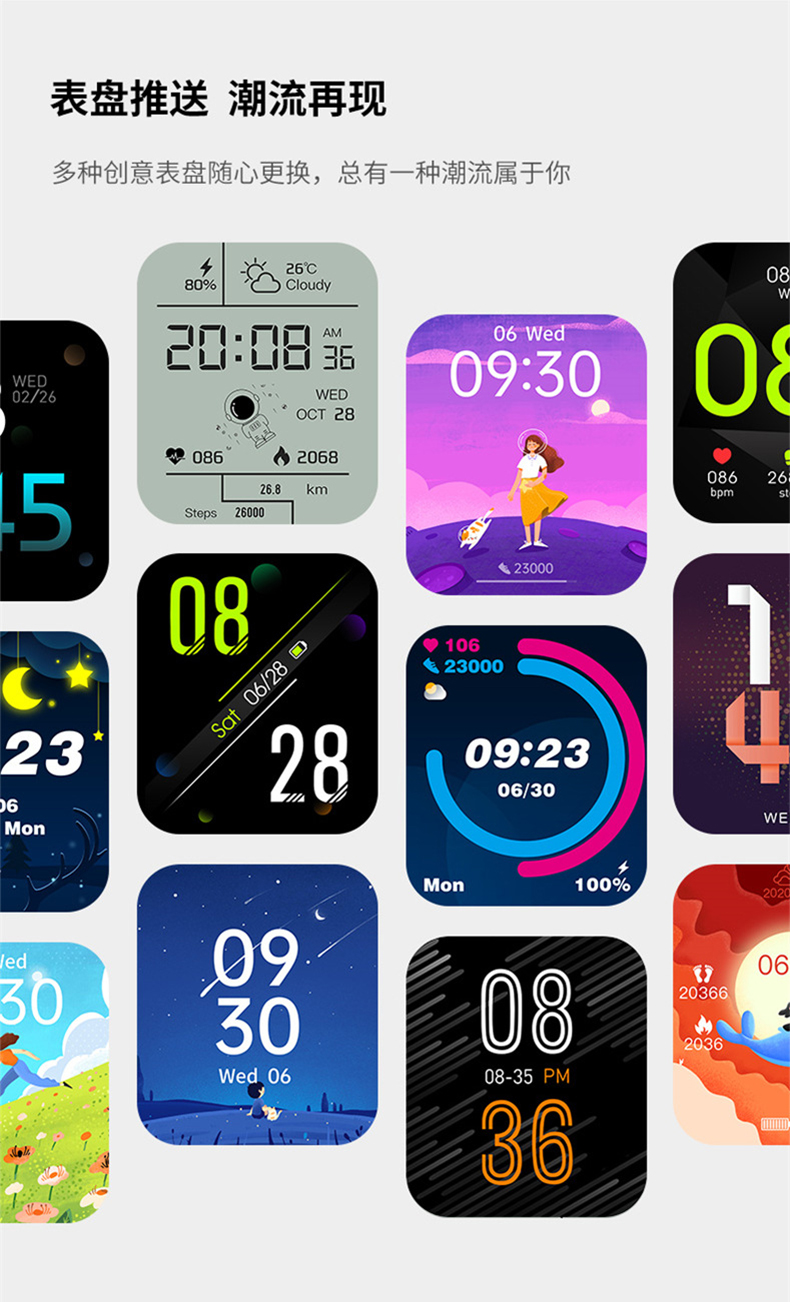 | 多表盤切換 | 手環(huán)長按主界面可切換表盤 | |